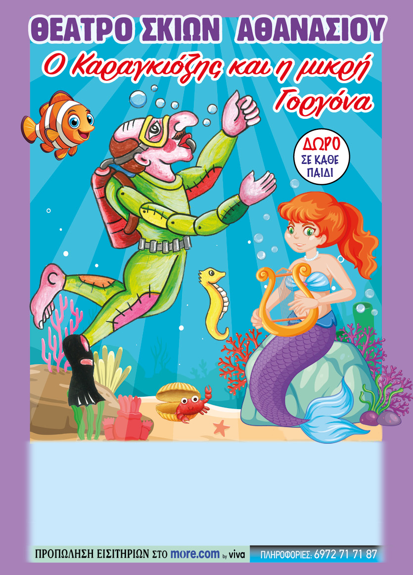 Ο Καραγκιόζης αναλαμβάνει να φέρει σε πέρας μία δύσκολη αποστολή , θα ντυθεί βατραχάνθρωπος και θα βουτήξει σε μία νέα περιπέτεια ! Ο λαϊκός μας ήρωας θα κολυμπήσει δίπλα στα πλάσματα του βυθού . Ετοιμασθείτε μικροί και μεγάλοι για την πιο διασκεδαστική κωμωδία του καλοκαιριού σας περιμένουμε όλους .