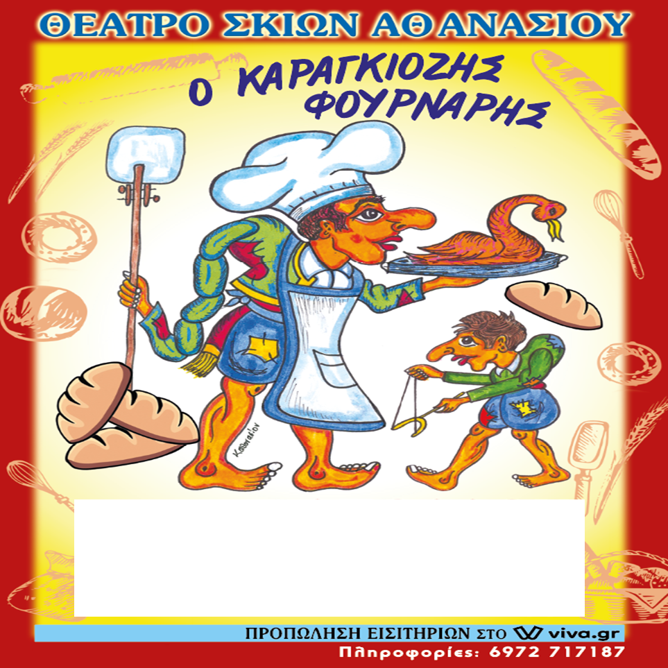 Ο Καραγκιόζης με τον Χατζηαβάτη, ανοίγουν φούρνο στην γειτονιά τους. Ζυμώνουν ψωμί, γλυκά και περιμένουν να σας ξεφουρνίσουν τα ωραιότερα καλαμπούρια τους.