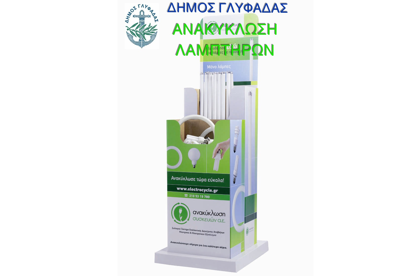 Ο Δήμος Γλυφάδας έχει τοποθετήσει 10 κάδους Ανακύκλωσης Λαμπτήρων σε όλη την πόλη. Σε αυτούς μπορείτε να ανακυκλώσετε: Λαμπτήρες (φθορισμού, εκκενώσεως, νατρίου), Λαμπτήρες πυρακτώσεως