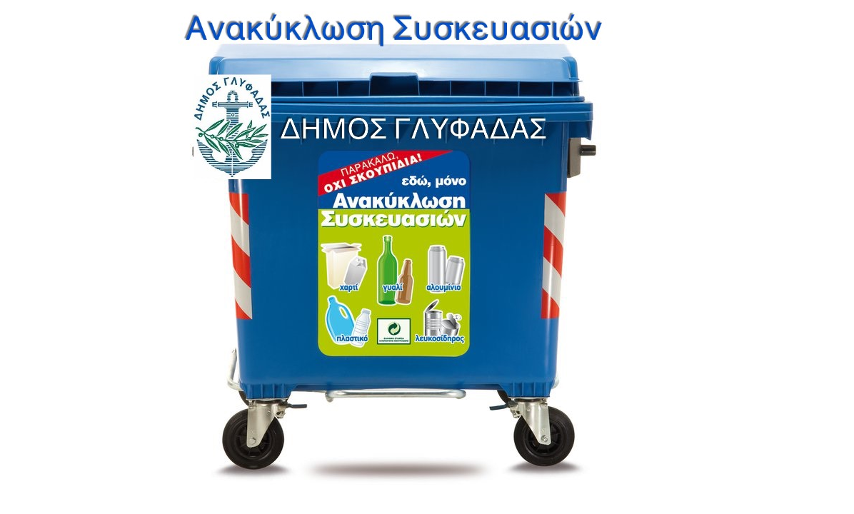 Ο Δήμος Γλυφάδας έχει τοποθετήσει Μπλέ κάδους Ανακύκλωσης Συσκευασιών σε όλη την πόλη. Σε αυτούς μπορείτε να ανακυκλώσετε: Πλαστικό, Λευκοσίδηρος, Αλουμίνιο, Γυαλί, Χαρτί.