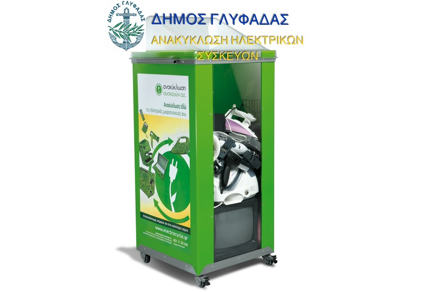 Ο Δήμος Γλυφάδας έχει τοποθετήσει 8 κάδους Ανακύκλωσης Ηλεκτρικών Συσκευών σε όλη την πόλη. Σε αυτούς μπορείτε να ανακυκλώσετε: Μεγάλες & μικρές οικιακές συσκευές, εξοπλισμό πληροφορικής και τηλεπικοινωνιών, παιχνίδια και εξοπλισμό ψυχαγωγίας και αθλητισμού, όργανα παρακολούθησης και ελέγχου κτλ.